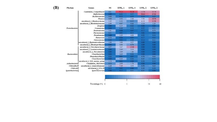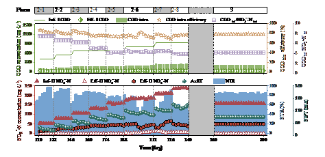 基于高NO2--N积累的内源短程反硝化稳定维持策略与厌氧氨氧化过程反应机制,考察EPD+Anammox组合工艺脱氮性能。研究不同碳源(乙酸钠和葡萄糖)、不同NO3--N进水浓度等对组合工艺碳、氮去除率与功能微生物代谢活性的影响,探究组合工艺的稳定性和性能优化调控方法;同时考察性能优化过程中EPD污泥与Anammox污泥菌群结构的变化情况,分析功能微生物菌群数量变化与组合工艺脱氮性能之间的相互关系,构建组合工艺菌群结构优化调控策略。