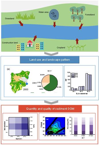 溶解性有机质(DOM)由于其独特的数量和质量特征,在内陆和沿海水域的一系列生物地球化学过程中发挥着重要作用,而研究发现,DOM的含量和质量受到一系列流域特征(如水文条件、生物因子和土地利用)的影响。其中土地利用和景观格局是影响DOM的两个主要因素。20世纪末以来,随着城市化和工业化的快速发展,大沽河流域受到了人类活动的强烈影响,其土地利用和景观格局也发生了巨大变化。研究旨在分析三个子流域沉积物中DOM的数量和质量,探究胶州湾大沽河三个子流域的土地利用和景观格局变化,以及这些子流域特征对DOM含量和质量特征的影响。结果表明,在土地利用方面,流域林地和农田比例与沉积物中的溶解性有机碳(DOC)含量成负相关,与DOM中的腐殖质组分含量成正相关;水域占比高的子流域,DOM中类蛋白质组分含量较高。在景观格局方面,景观破碎化程度越高,沉积物DOC含量越低;景观的连通性越好,子流域出口沉积物DOM中的类腐殖质组分越高。总体而言,子流域特征对DOM质量的影响大于对其含量的影响。研究为不同流域特征对河流沉积物中DOM含量和质量的影响提供了新的认识,为河流生态系统管理提供了有力支持。