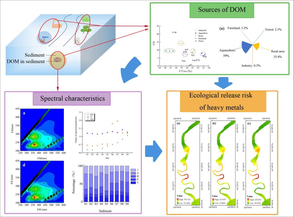 河口区是连接河流、海洋和陆地的重要区域,近年来,随着工业发展和城市化进程的加快,河口区的污染问题也日益严重。而河口区DOM与河口区的污染问题密切相关,从而引起了广泛关注。本研究主要以大沽河河口区表层沉积物DOM为研究对象,采集了从大沽河下游到入海口处不同河道断面的沉积物样品和周边主要土地利用类型的土壤样品进行研究。研究内容包括探究大沽河河口区表层沉积物中DOM的来源、含量和结构分布特征及其生态指示(用重金属和富营养化的潜在生态风险表示)。用碳稳定同位素混合模型(13C和C/N值)计算DOM来源的相对贡献,用紫外-可见光谱(UV-Vis)和三维荧光光谱等方法测定了大沽河河口区表层沉积物中DOM的光谱特征。此外,还用层次分析法和原位测定等方法对重金属和N、P释放的潜在生态风险进行了分析、评价。最后,分析了DOM的来源,含量和结构特征与潜在生态风险(重金属、N、P)之间的关系。本研究旨在为DOM的生态指示研究提供新的思路,为滨海小流域的环境管理和土地利用规划提供基础资料。