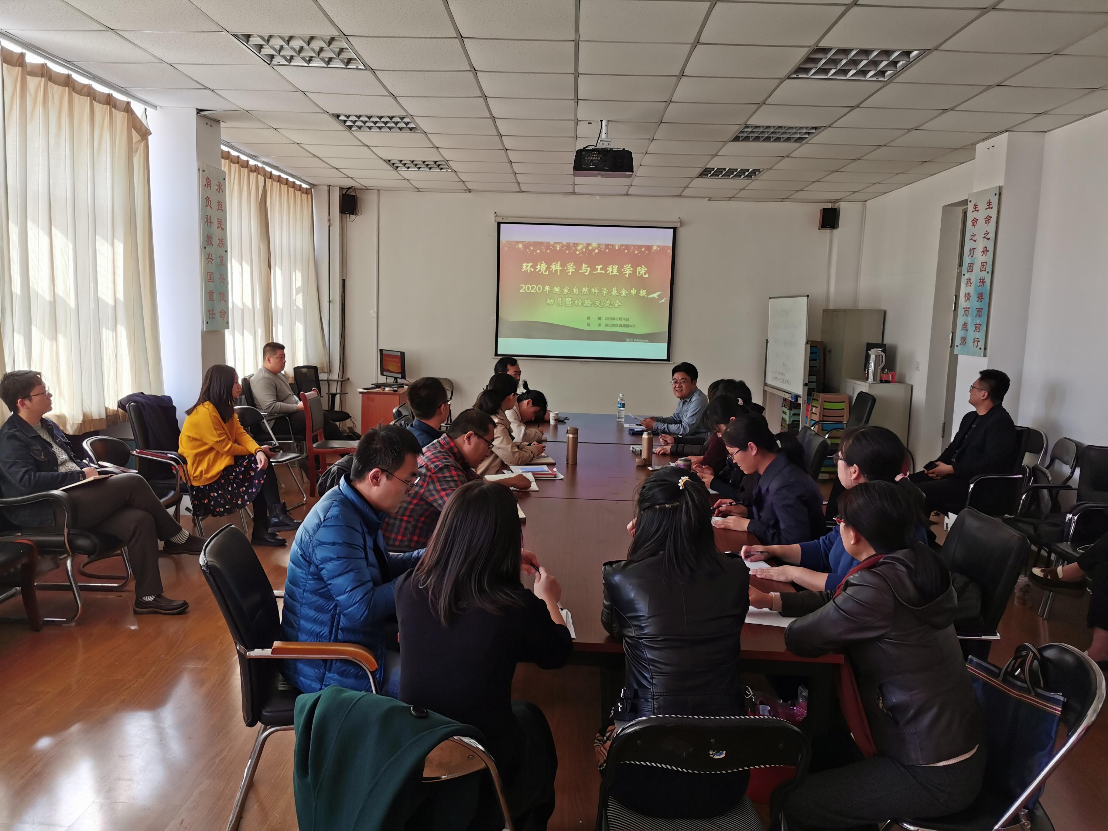 11月14日下午,环境科学与工程学院在浮山校区诚思楼406会议室召开2020年国家自然科学基金申报动员暨经验交流会。副院长孔范龙主持,学院30余位教师参加本次会议。