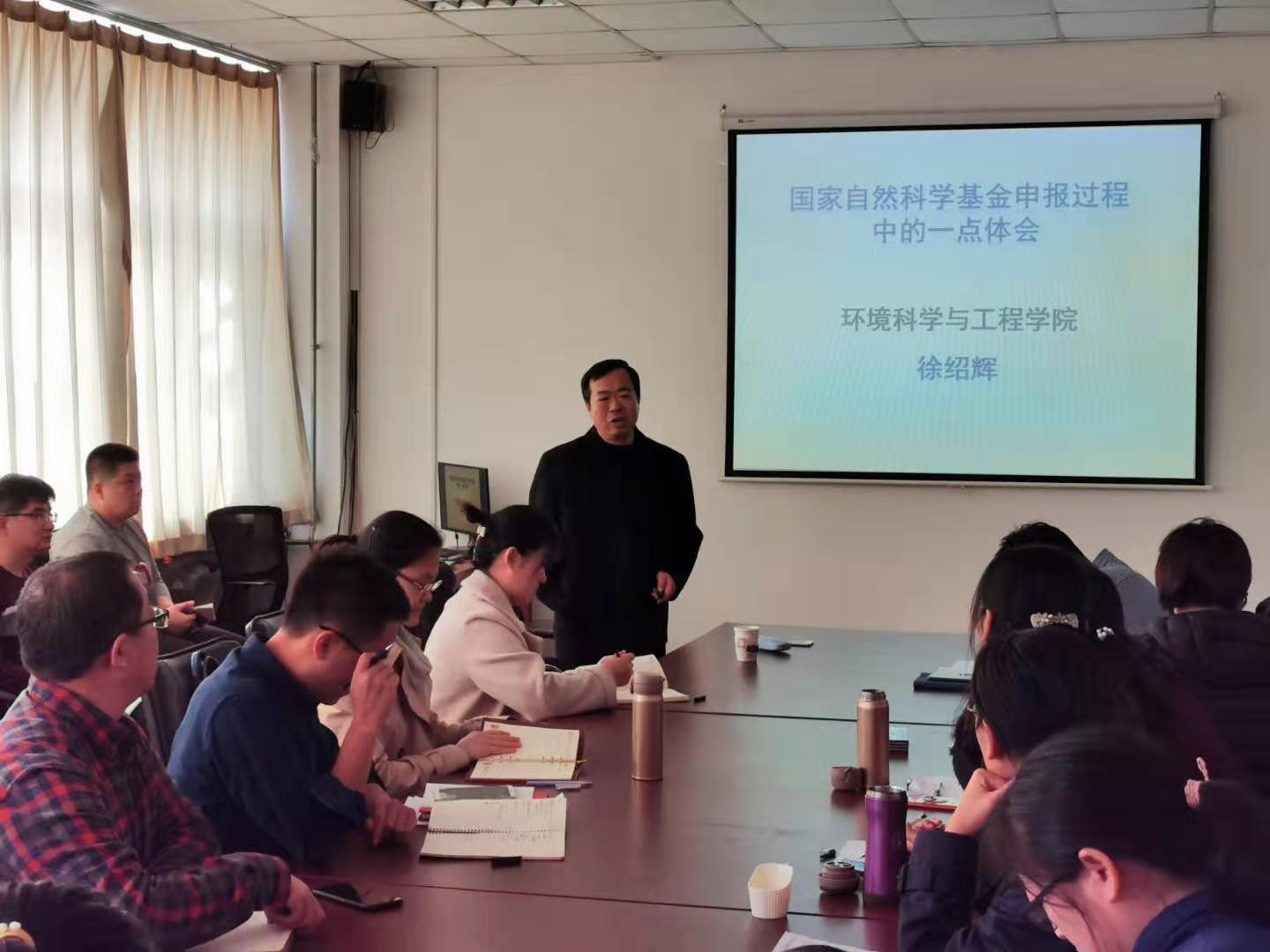 环境科学与工程学院2020年国家自然科学基金申报指导和资助方案》(青大环院科研字(2019)1号)介绍了学院在“强化指导+专项支持”方面的举措和实施方案。随后,徐绍辉教授则结合个人项目申报经历和多年的评审经验,以“国家自然科学基金申报过程中的一点体会”为题,依次从项目选题、摘要、立项依据、研究内容及技术路线和可行性分析等模块的撰写技巧、注意事项进行讲解,着重介绍了选题的重要性及“立项依据”模块关键科学问题的提出,并就如何确定切实可行、有亮点的技术路线和研究方案提出了建议。最后,老师们就关心的问题展开了热烈的讨论。