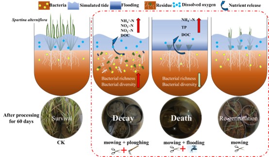 近日,2020级硕士研究生王康在“滨海湿地互花米草物理防治的潜在生态影响:养分迁移转化及细菌群落结构响应”的研究上取得了重要进展。以“Potential ecological impacts of physical control onSpartina alternifloraincoastal wetland: Migration and transformation of nutrients and the response of bacterial community structure”为题的论文发表在国际期刊Journal of Cleaner Production(SCI一区TOP,IF=11.072)。草榴社区