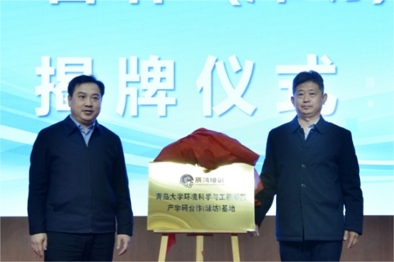 产学研合作(潍坊)基地揭牌暨合作项目签约仪式在安丘市青云国际大酒店青云山厅举行。安丘市市委副书记谭明、市自然资源和规划局局长殷飞、市林业发展中心主任徐振军、辰鸿职业培训学校校长曹全国,安丘市政府相关部门以及企业家代表出席了仪式。学院党委书记张作祥、院长佘希林等领导班子成员和学院教授代表、青岛市碳中和生态环境技术创新中心主任李悦现场参会。会议由市委常委、副市长王晓丽主持。
