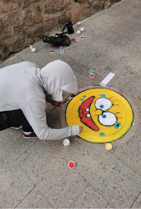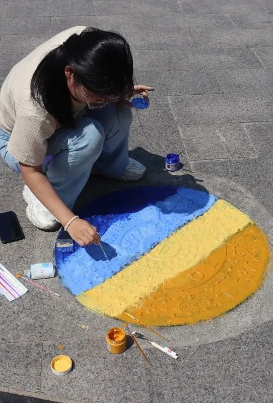 本次活动围绕欧式风情度假小镇、异域山地小镇等主题,设计绘画南北岭村示范街巷上的30个多井盖,同学们利用井盖的凹凸效果和纹理进行创意、上色、钩边,用一支笔,一双手认真绘出心中所想。天气阴晴多变,一会儿艳阳高照,一会儿突下暴雨,给志愿者们增添了许多麻烦,但是大家依旧热情不减,拿起画笔给一个个普通的井盖穿上了新衣服,“井”上添画。不仅为街道增添了一道靓丽的风景线,也让我们枯燥无味的生活增添了色彩,陶冶了情操。