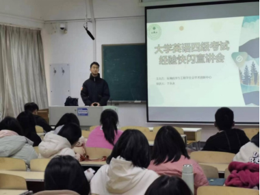 11月13日,陈鑫同学在博学楼203向2023级全体同学分享了关于四级考试的复习经验,他提出在备战四级过程中可以使用百词斩、不背单词等英语学习软件以及微信公众号进行每日的单词练习与听力练习;同时还分享了自己对于写作的独特见解以及如何提高写作能力。