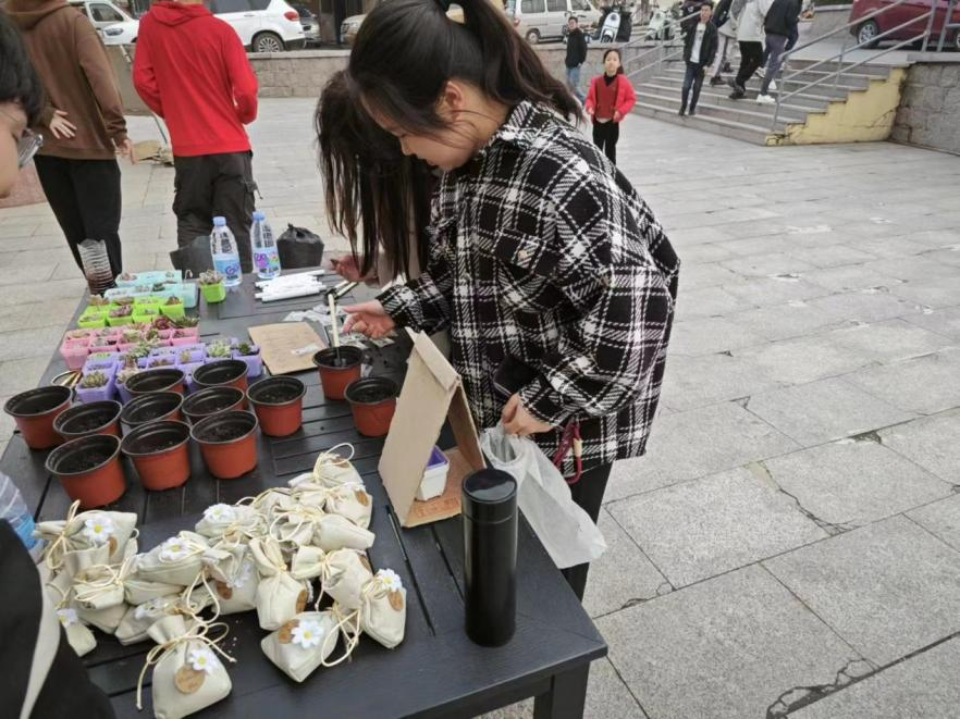 活动吸引了不少路人的关注,同学们拿出自己各类物品来换取绿植或者花卉种子。在DIY花盆活动环节,同学们用现场物料,发挥想象力制作一盆属于自己独特手工花盆,并将刚刚置换得到的花卉种子种下,留下一份春日里的回忆。