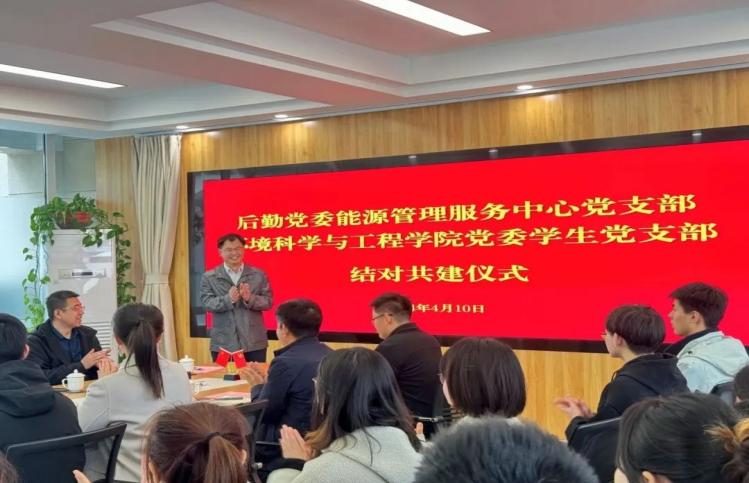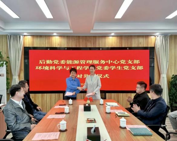首先,后勤管理处处长刘清亮致辞。刘清亮处长首先对环境科学与工程学院党委学生党支部的到来表示欢迎,并希望两个支部通过结对共建,能形成“抓党建、促发展”的合力,进一步加强后勤与学院之间的沟通合作,实现资源共享、优势互补、合作共赢。将党建工作与业务工作有机融合,搭建思政育人平台,将生态文明理念融入劳动实践,不断提升基层党组织的凝聚力和战斗力。双方党支部负责人就共同开展生态文明教育、绿色校园创建、思政育人平台建设等方面达成一致,并签订共建书。他详细介绍了后勤部门的基本情况、发展现状和工作理念,希望通过两支部结对共建,让更多学生来到后勤、走向后勤、贴近后勤。随后,后勤管理处副处长、后勤能源党支部书记张雯与环境科学与工程学院党委副书记孙竹媛代表两支部进行结对共建签约。随后,学生党支部书记尹昊、学生党支部学生党员代表杜中伟依次发言。与会人员共同参观了学校智慧能源管理平台和智慧节水平台。
