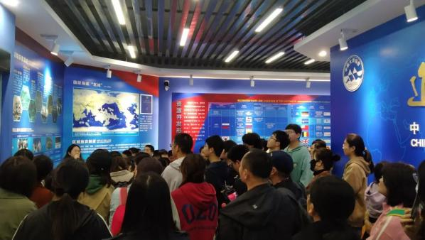 在海洋知识讲解员的引导下,同学们通过观看历史照片、深海资源样品、生物标本、装备模型、视频短片等感受到了深海探索的魅力,也将“自强、探索、奉献、和平”的大洋精神铭记在心。