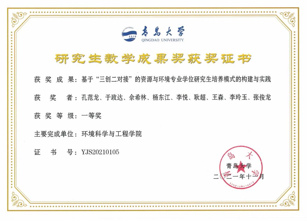 研究生教学成果一等奖,该成果被兄弟院校借鉴和采用,起到了引领示范作用。