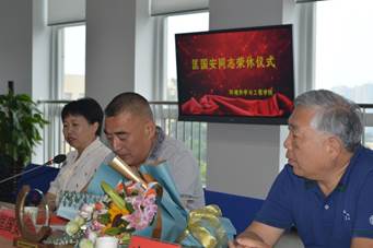 牟晓燕、沈贵荣、李悦为匡国安同志赠送荣休纪念品并合影留念。