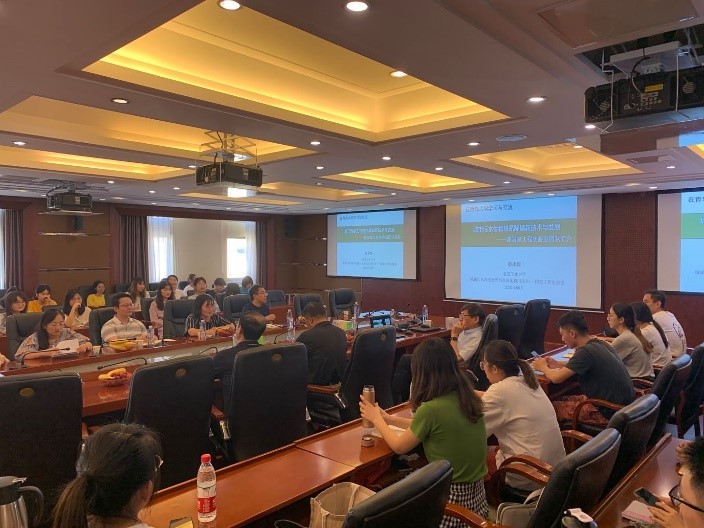 彭永臻院士主要从“城市污水生物脱氮除磷新技术与团队简介”“短程反硝化耦合厌氧氨氧化深度脱氮技术”两方面展开。首先,他介绍了北京工业大学国家工程实验室团队与研发平台。接下来,针对“短程反硝化”与“厌氧氨氧化”等前沿城市污水生物脱氮除磷新技术,他分别从目前城市污水脱氮除磷研究背景、试验装置、有机物和氮去除特性等方面展开。他认为短程反硝化耦合厌氧氨氧化作为其团队首先提出的深度脱氮技术,具有极大的发展潜力,与传统的的脱氮技术相比具有节省碳源、能耗小等优势;在厌氧条件下,厌氧氨氧化菌能够利用污水中的氨氮与亚硝酸盐在自养条件下实现低C/N城市污水的深度脱氮,大大减少了污泥产量和曝气能耗。他还指出该工艺在城镇污水处理中的应用前景尤为广阔。报告结束后,他与现场师生们进行互动交流,为同学们耐心解答了有关污水处理新技术、升学深造等方面的问题。