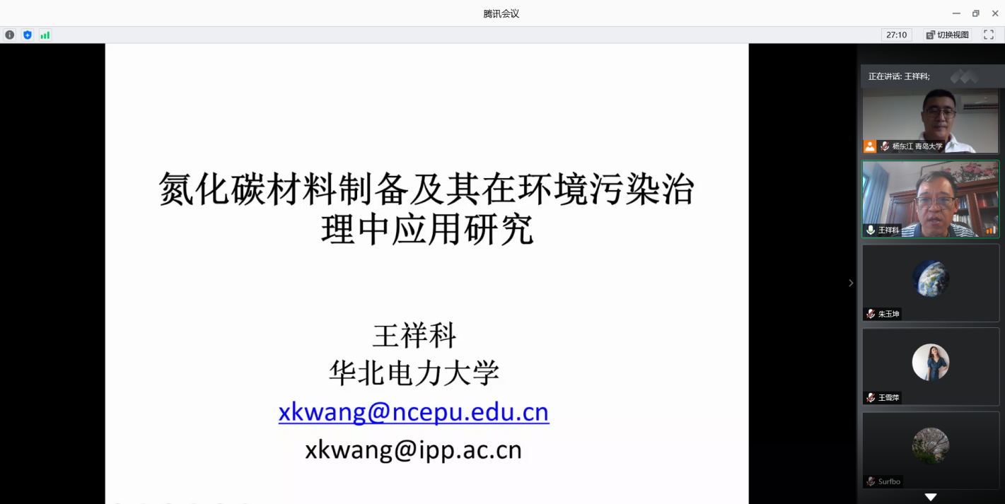8月18日,应环境科学与工程学院杨东江教授邀请,华北电力大学环境科学与工程学院王祥科教授在腾讯会议为全院师生作了题为“氮化碳材料在光催化中的研究”的高端学术报告。报告会由杨东江主持,60余名师生在线参加。