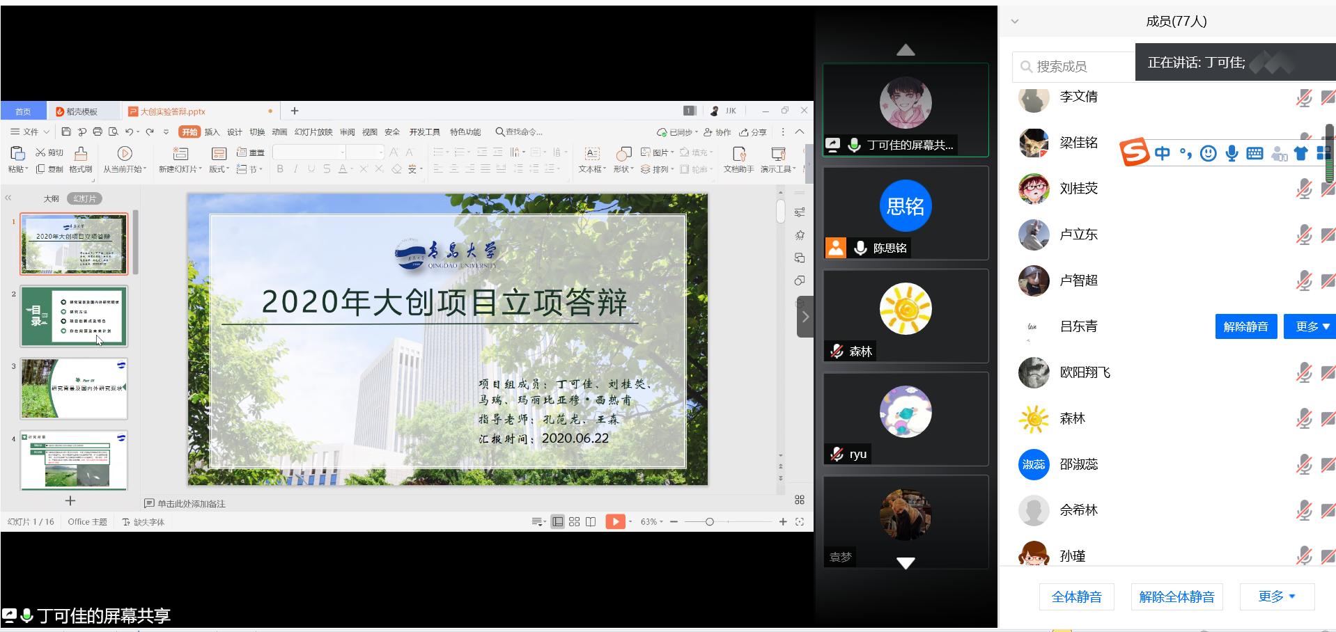 项目立项答辩过程中,由佘希林教授、孙瑾教授和李玲玉、陈光辉、徐艳、王森等经验丰富的教师组成答辩评审组,各学生团队的项目负责人克服各种困难,利用网络在线的方式进行项目介绍和答辩。答辩者主要从项目背景、选题意义、创新点、研究内容、实施方案、预期成果等方面进行精彩的陈述和分析,并就评审专家提出的问题进行了科学的回答和交流。专家评审组对项目选题、申请团队知识储备、项目实施方案、申请书提升修改等方面,给予了详细的指导。