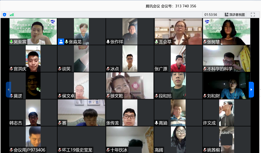 本届环保科技文化艺术节的主题为“同心协力抗疫情 ,'境'待山水展笑颜”。院学生会主席吴至宸同学宣读了本届环保科技文化艺术节实施方案。次环保科技文化艺术节共分为三个大类:1、“创造绿色未来—大学生在行动”系列环保活动:①“绿色·未来”驻青高校地球文化节;②“一滴清水,一片绿地,一个地球”主题摄影比赛;③“环科学院进校园,推动落实新时尚”垃圾分类线上宣讲;④“心灵手巧·变废为宝”手工创意DIY活动。二是“隔离疫情,抗疫有我”系列线上活动:①“抗疫有我,携手云端”视频制作活动;②“隔离疫情,常驻温情”抗疫文章征集活动;③“3/7”云自习打卡④“燃烧我的卡路里”云健身打卡;⑤“坚定信心,不负韶华”战“疫”云班会。三是“创新创业,玉琢成器”系列考研、就业、创新创业指导交流活动:①“筑梦‘环’院,‘研’续梦想”考研复试线上指导;②“鲜衣怒马,笑逐‘研’开”考研动员大会;③“‘职’面人生,共筑就业坦途”就业分享交流;④“创新创业,天涯咫尺”创新创业训练计划。