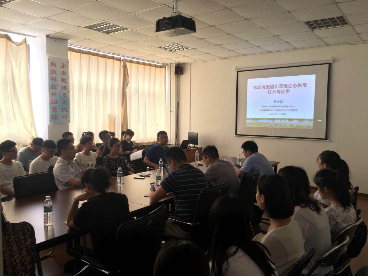 7月15日上午,中国科学院东北地理与农业生态研究所佟守正研究员应邀在浮山校区诚思楼406为我校师生作了题为“东北典型退化湿地生态修复技术与应用”的高端学术报告。报告会由环境科学与工程学院副院长孔范龙主持,与会师生40余人。