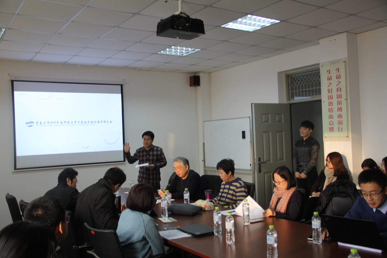 2018年度研究生学术交流年会环境学院分会在浮山校区诚思楼406学术报告厅举行。孔范龙老师主持年会,32名研究生做了交流,院长李悦出席并致开幕词。