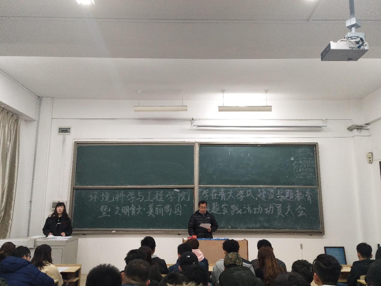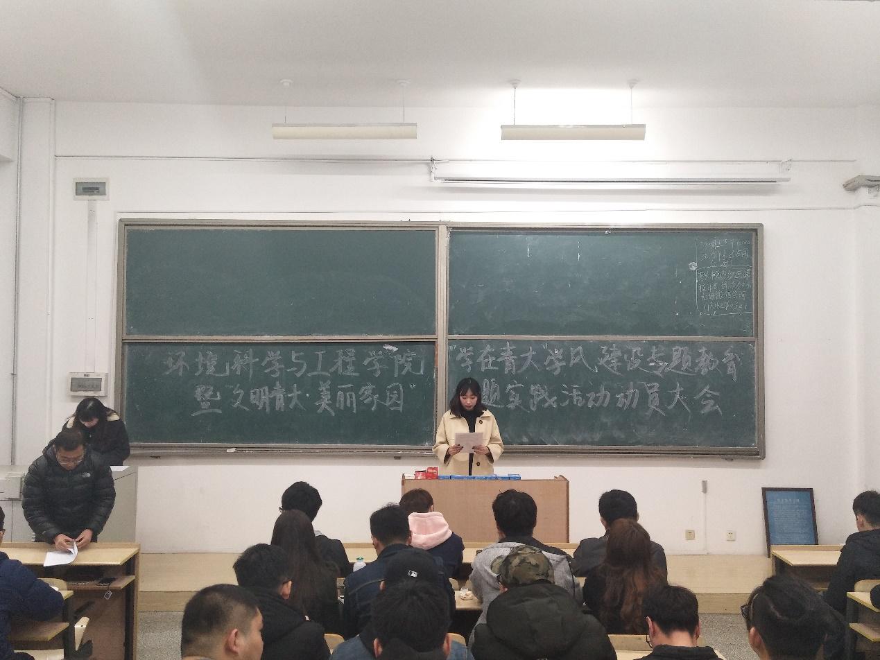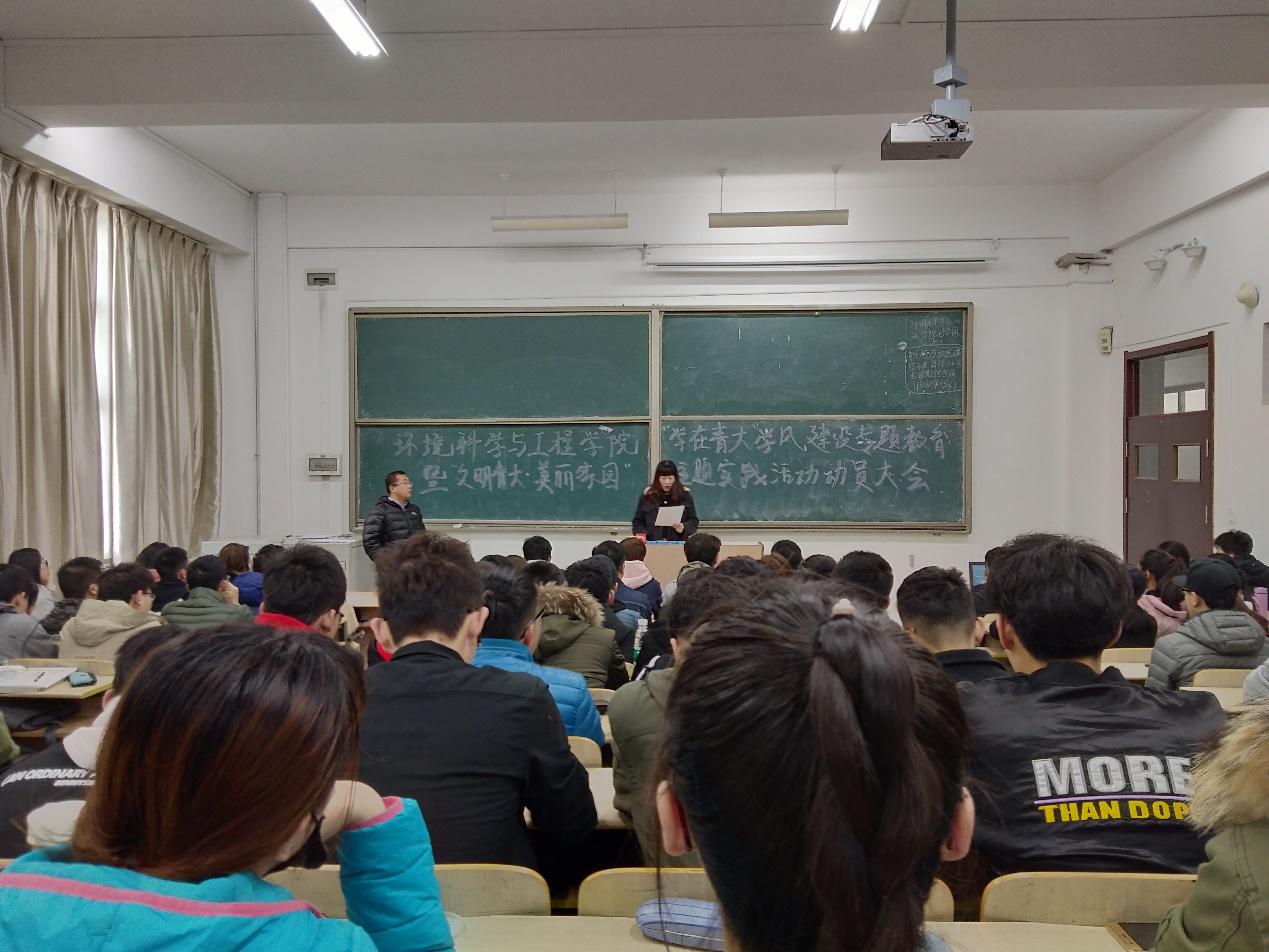 3月18日上午,环境科学与工程学院组织学院学生会干部、班干部、学生党员、入党积极分子和学生代表200余人,在浮山校区东十二教召开“学在青大”学风建设专题教育暨“文明青大·美丽家园”主题实践活动动员大会。