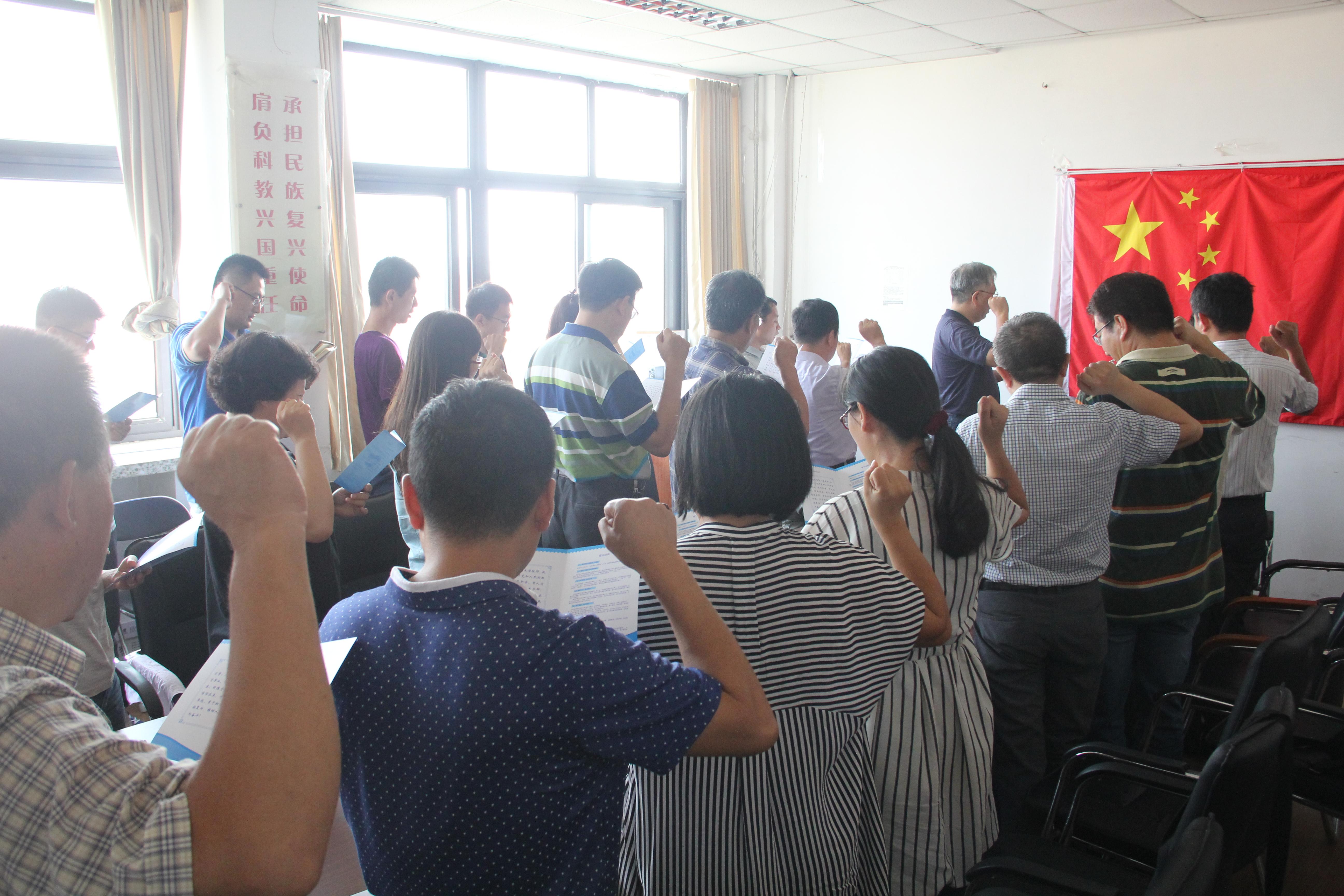 9月8日下午,在嘹亮的国歌声中,环境科学与工程学院在诚思楼406报告厅召开全体教职工大会庆祝第23个教师节的到来。院长李悦带领全体老师举起右手、面对国旗,一起宣读了草榴社区