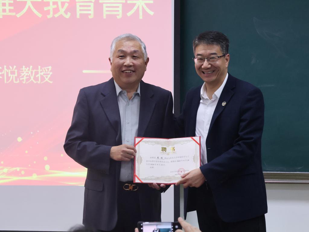 首先,由李悦教授为学院首批返校校友重上一堂课,带领校友们重返求学时光,回忆在校的青葱岁月。随后,与会人员通过视频共同回顾了李悦教授的从教生涯。校友代表为李悦教授献上鲜花,并送上祝福。学院党委副书记孙竹媛为李悦教授赠送纪念相册。学院院长佘希林为李悦教授颁发了督学聘书。