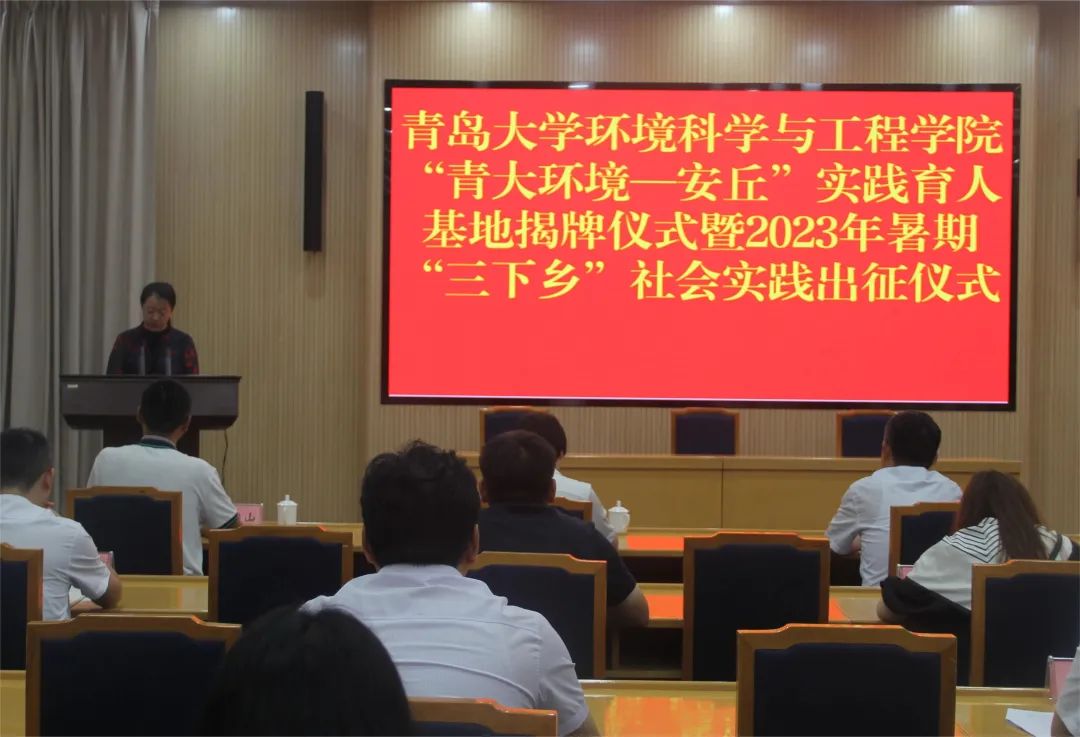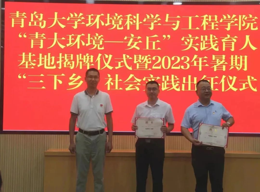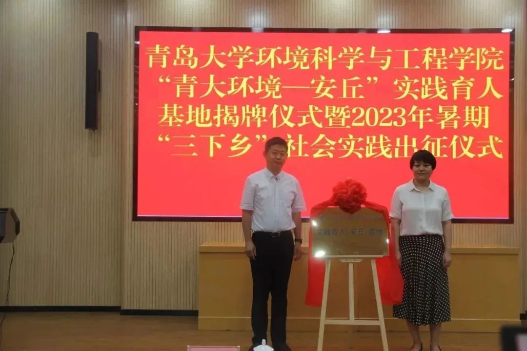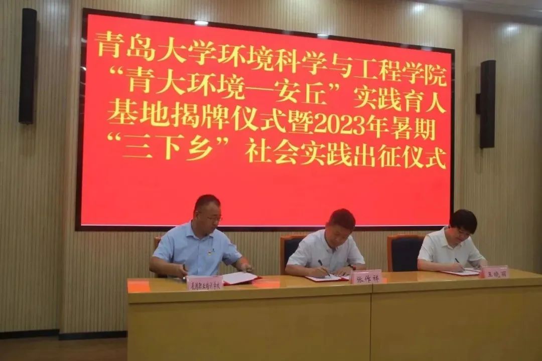党委书记张作祥,党委副书记孙竹媛,副院长赵宗山等一行7人以及学院“生态振兴,筑梦安丘”社会实践团队共赴安丘举行“青大环境-安丘”实践育人基地揭牌仪式暨2023年暑期“三下乡”社会实践出征仪式。