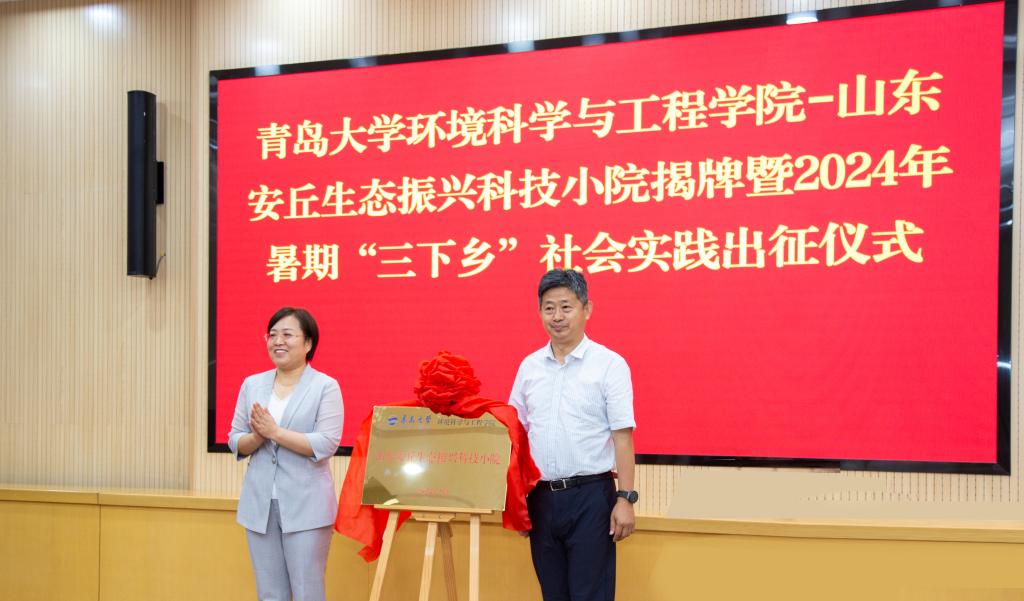 环境科学与工程学院-山东安丘生态振兴科技小院揭牌暨2024年暑期“三下乡”社会实践出征仪式。安丘市委常委、副市长刘娜出席会议并致辞,安丘市委组织部、团市委、各镇街区、市自然资源和规划局、市人社局、潍坊市生态环境局安丘分局、市教体局以及安丘辰鸿职业培训学校参加活动。活动由自然资源和规划局局长周希全主持。