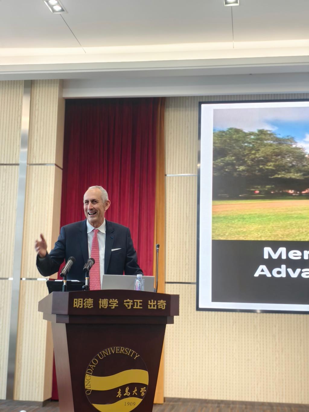对Pedro J. Alvarez教授表示热烈欢迎,他简要介绍了学校事业发展成就和我校生态环境学科的建设情况,希望通过强化国际合作和交流,推动生态环境领域的创新发展。