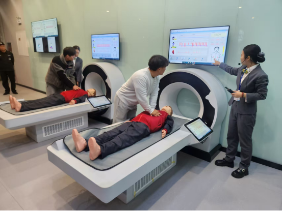 仪式后,学院师生实地参观了人防起源、高技术战争、精确制导武器等十大主题展区,沉浸式体验实景建模、交互全息投影、裸眼3D等数字展示技术,并参与心肺复苏+AED培训等实操项目,在直观感受与互动实践中深化对国防安全与应急救援知识的理解。