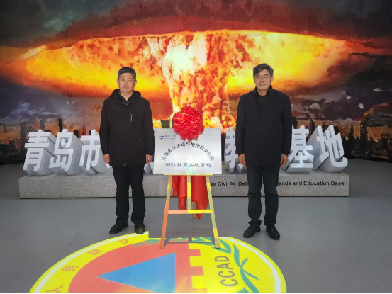 学院党委书记张作祥与青岛市国防动员办公室督促指导处处长王肇伟共同为基地揭牌。