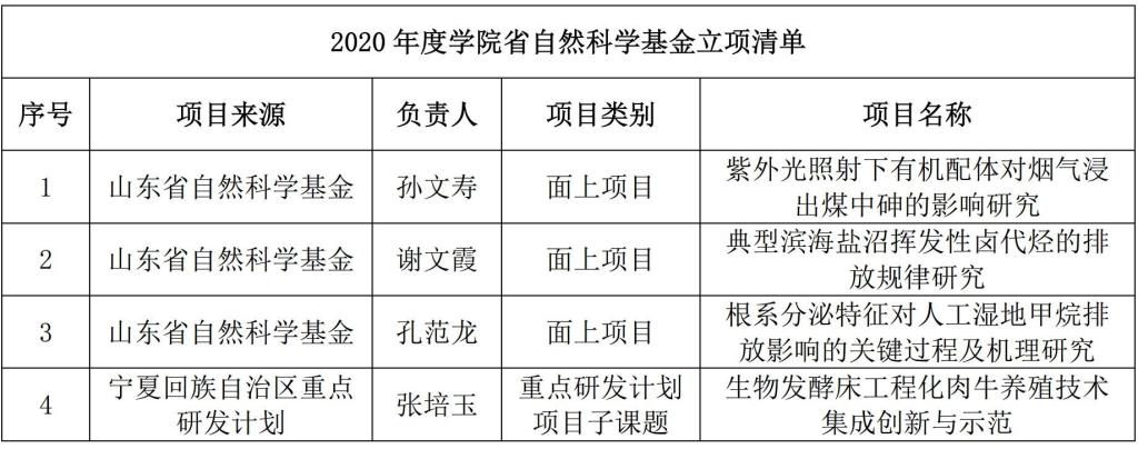 2、获批山东省自然科学基金面上项目3项、宁夏回族自治区重点研发计划项目子课题1项。