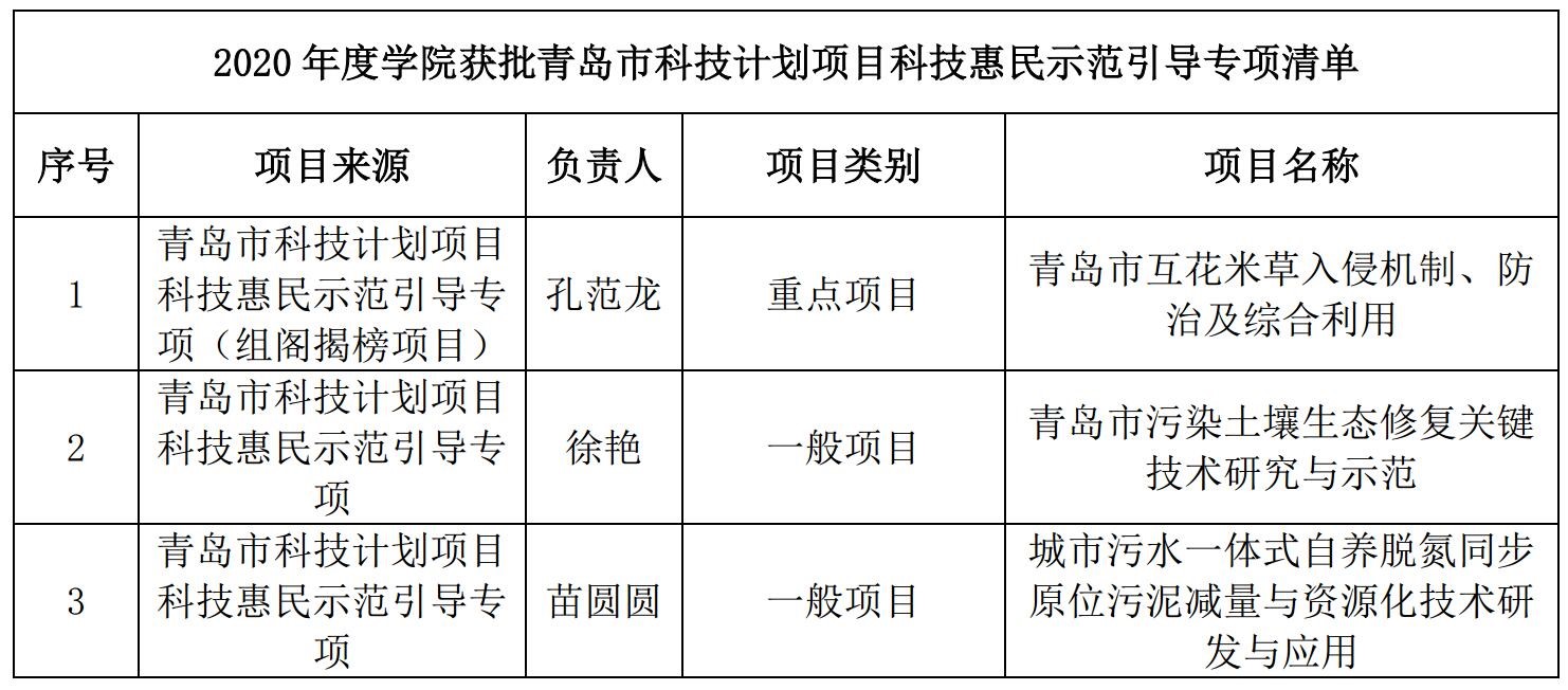 3、获批青岛市科技计划项目科技惠民示范引导专项3项,其中包含组阁揭榜重点项目1项,资助金额100万元。
