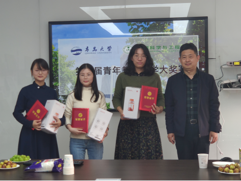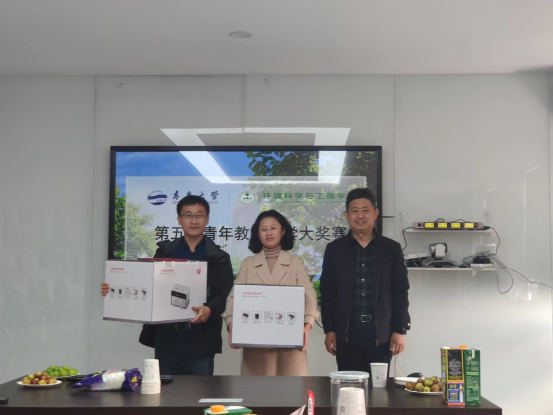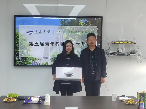 经过激烈角逐,青年教师苗圆圆荣获环境科学与工程学院第五届青年教师教学大赛一等奖;张俊龙、王晓翠荣获二等奖;张丛筠、李亚如、李昱茜荣获三等奖;李硕、黄海波、姚雪、王瑶瑶荣获优秀奖。张作祥为获奖选手颁发荣誉证书和奖品。