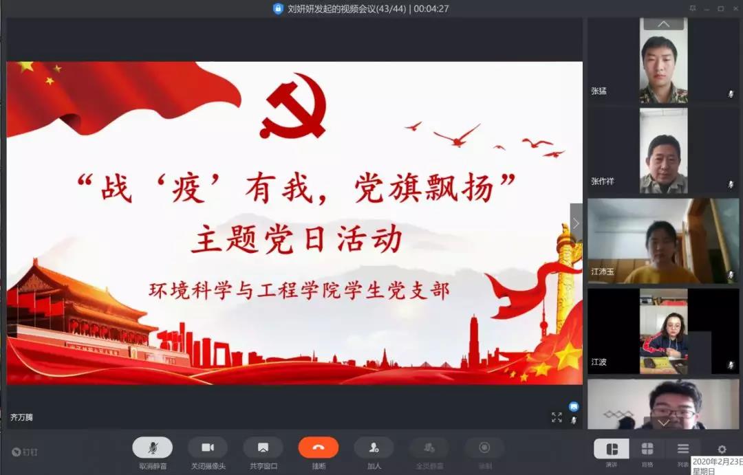 2月23日中午,环境科学与工程学院学生党支部利用钉钉视频会议开展“战‘疫’有我,党旗飘扬”主题党日活动。本次会议由学生党支部书记刘妍妍老师主持,支部全体党员和学院党委副书记张作祥参加了此次支部活动。