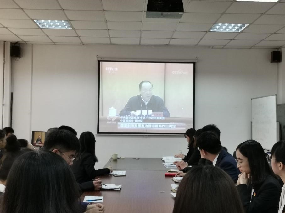 会上,大家集体观看了党的十九届四中全会上的重要讲话视频,支部书记刘妍妍老师从党员培养发展和党建工作开展两方面对一年的工作进行了总结,大家就如何开展好支部工作提出了一下建设性意见和建议,党员之间还就理论学习、模范担当、日常生活、服务同学等方面开展了诚恳的批评与自我批评,查摆问题和足,提出相应的整改措施。最后,支部对每一名党员进行了民主评议。