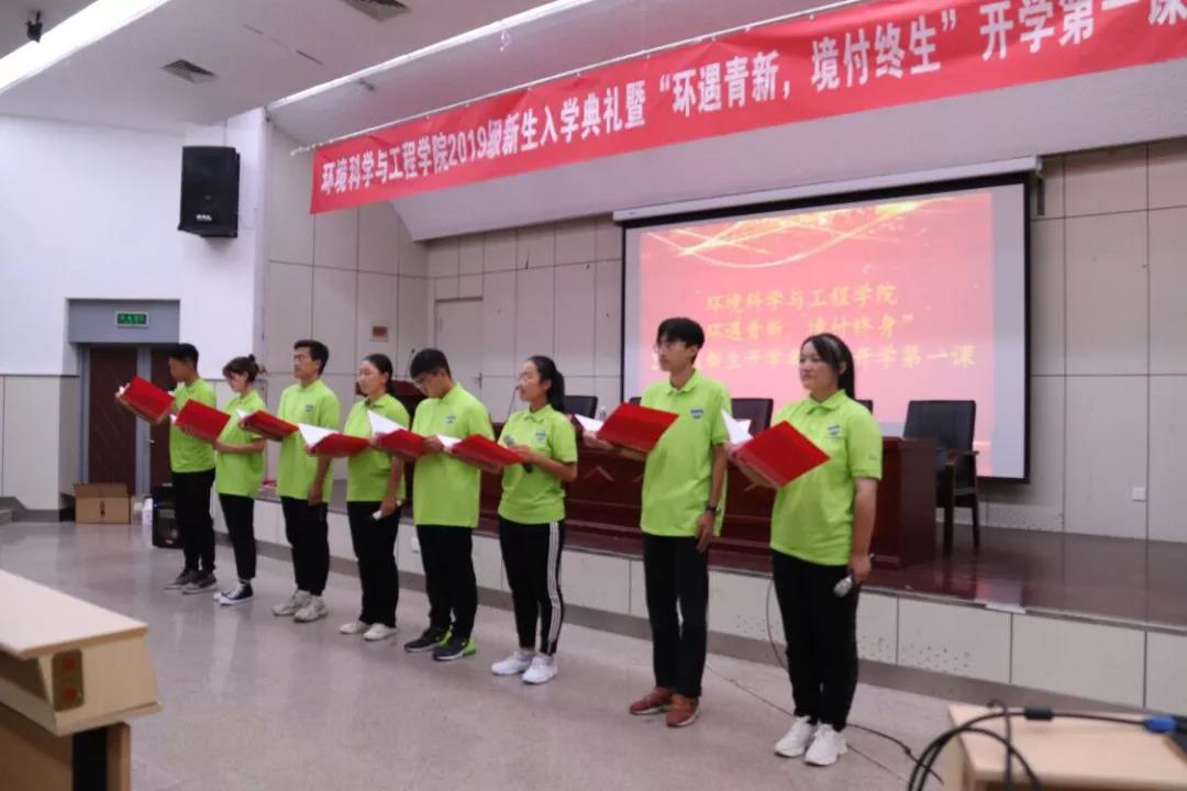 办学110周年的发出了由衷的祝福和赞美,真情表达了老同学对新同学们的期望和新生对未来大学生活的展望。学院学生会主席吴至宸同学带领新生举起右手集体宣誓了《环境科学与工程学院新生入学誓词》。