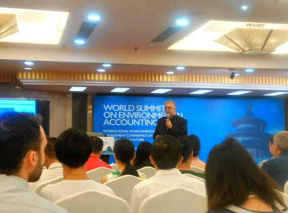 2016年首届环境核算与管理世界峰会(World Summit on Environmental Accounting 2016)于7月4-6日在北京举办,本次会议由北京师范大学、国际能值协会中国分会、国际环境生态学会联合主办,由国际能值协会、生态足迹网络、罗马俱乐部、北京市流域环境生态修复与综合调控工程技术研究中心等机构联合支持。大会主席由中国工程院院士、国际能值协会中国分会主席杨志峰教授担任。湿地生态与环境课题组杨玲同学参加了峰会并进行了poster presentation,poster presentation的主题为“Environmental Economic Value Calculation and Sustainability Assessment for Soil Rapid Infiltration System based on Emergy Analysis”。本次会议各方参与研讨了当下基于生物物理理论和社会经济理论的环境核算方法的最新研究进展及管理实践,提高了对复杂生态系统的“紊乱”状态进行科学可靠的数值核算与模拟的认知。
