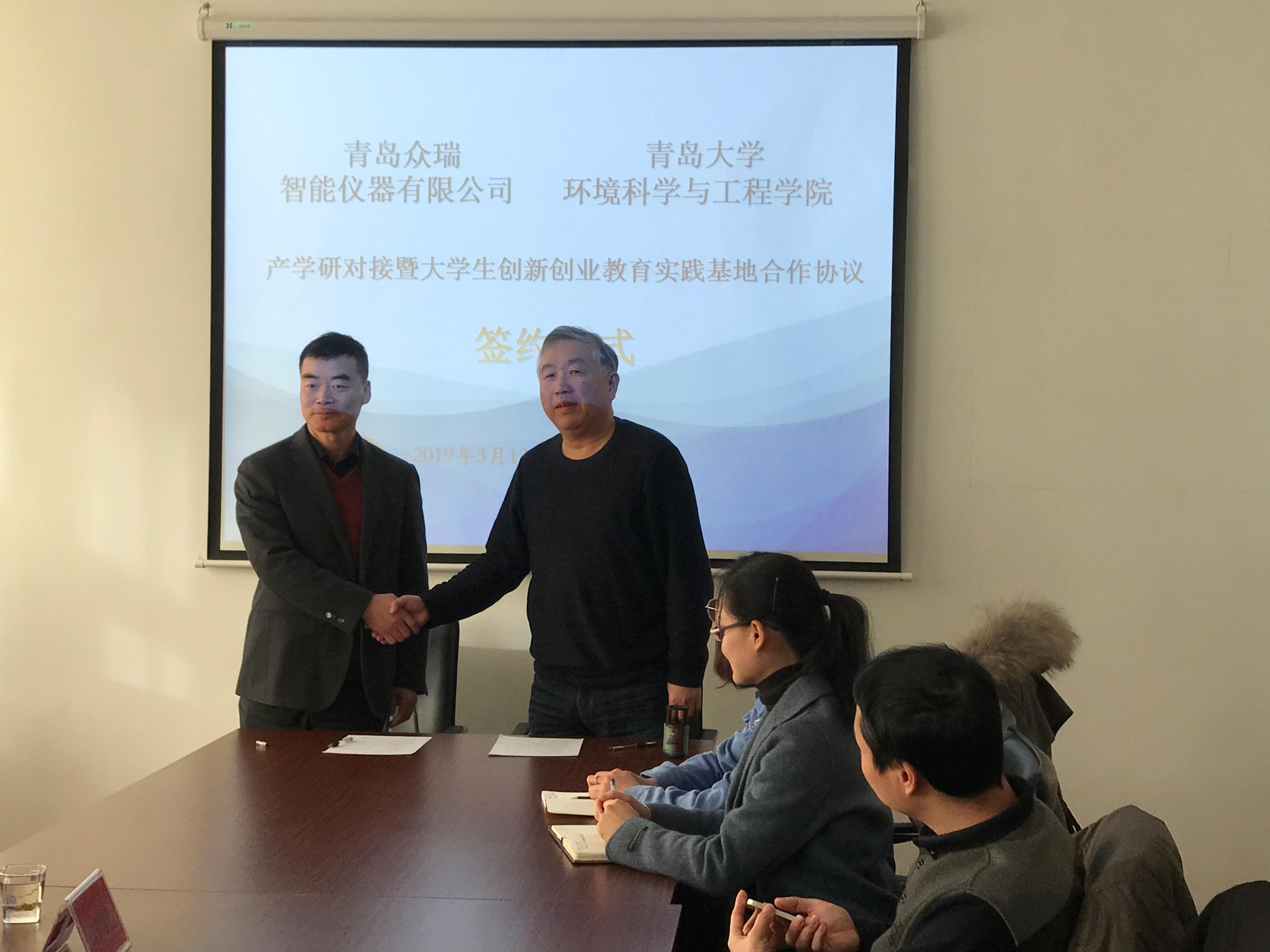 按照双方协议,为培养创新型、实践型环境领域高层次人才,学院在青岛众瑞智能仪器有限公司建立大学生创新创业教育实践基地,为公司提供技术支持和服务,择优推荐优秀毕业生,公司为大学生创新创业教育提供实践、实训基地和项目孵化,双方联合申报国家级大学生创新创业训练计划项目。